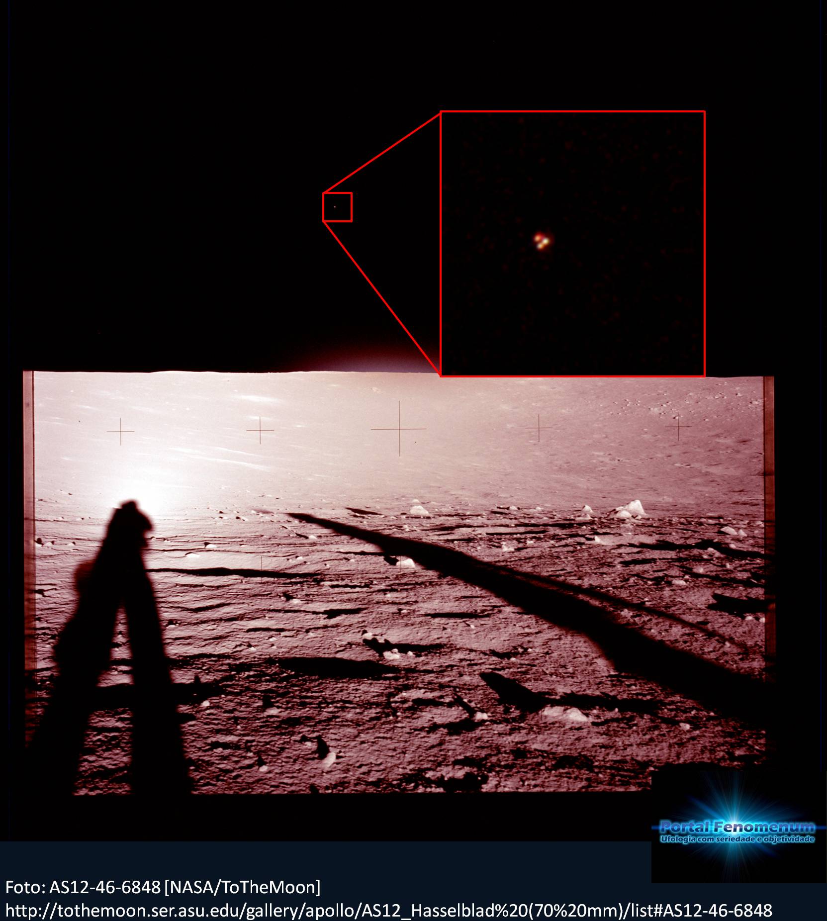 Objeto luminoso, triangular, sobre o local de pouso da Apollo 12. Um objeto semelhante foi fotografado pelos astronautas da Apollo 11.